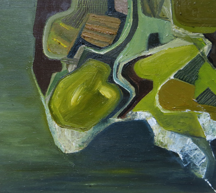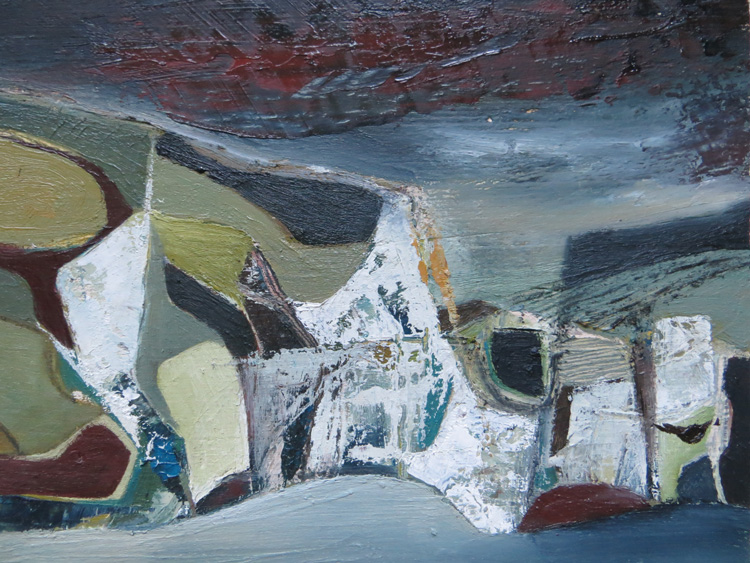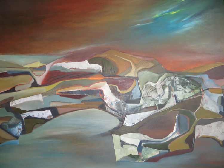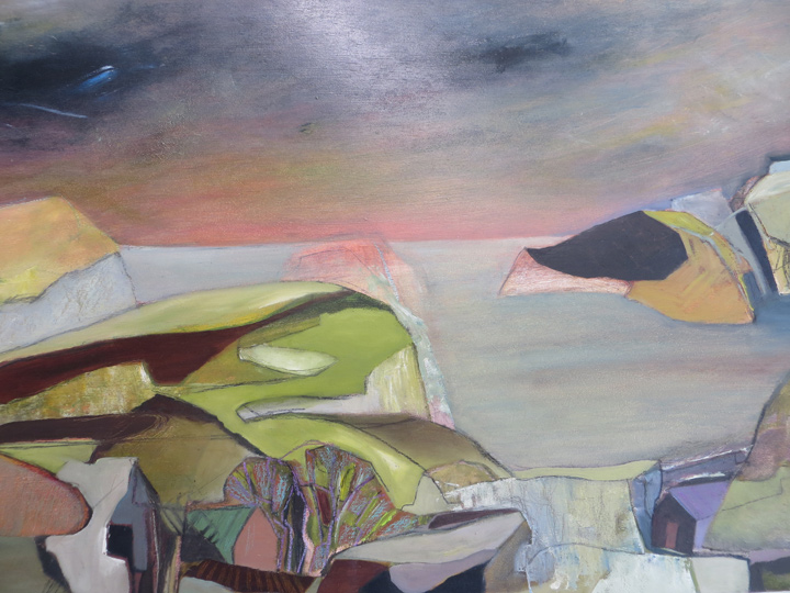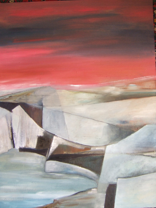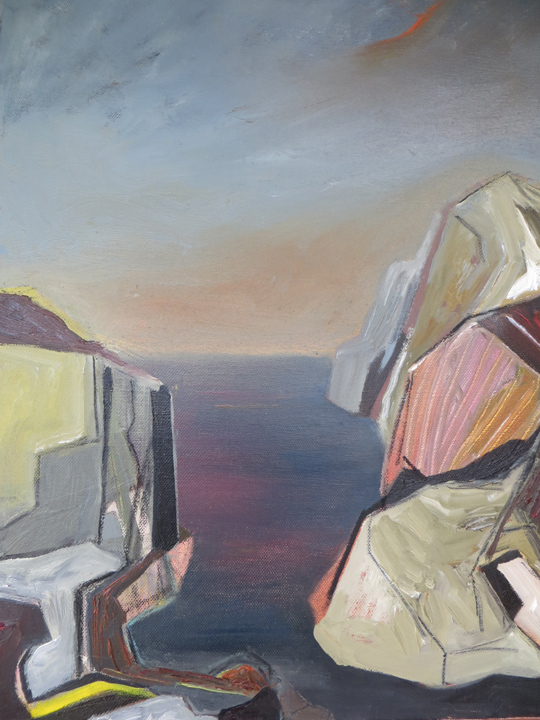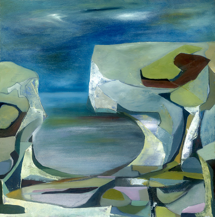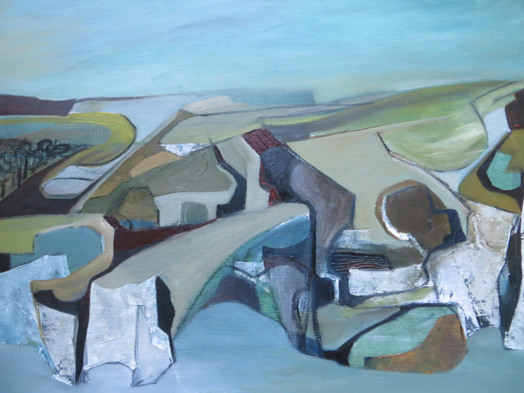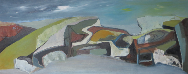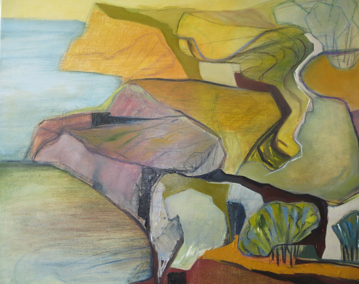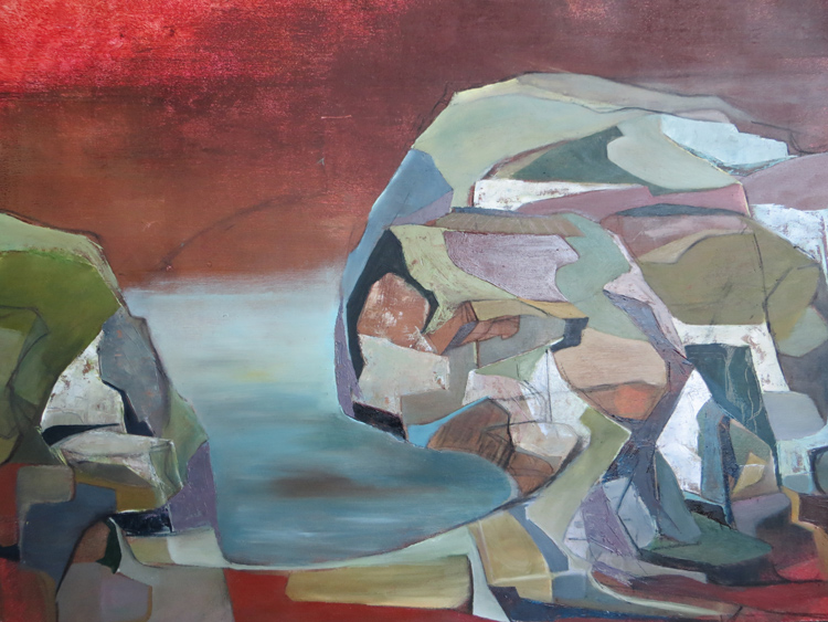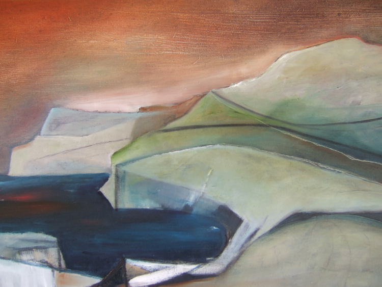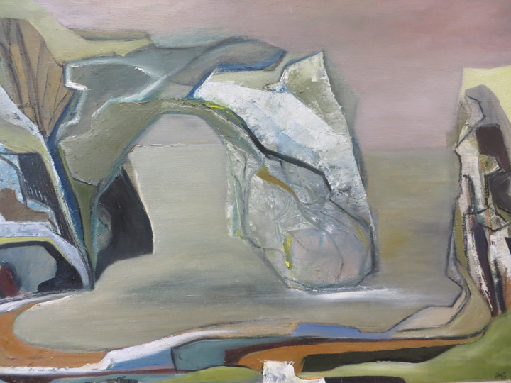 The evocative rock and stone of Purbeck, the moods of nature through unpredictable weather changes all play a vital part in how Heather approaches her work. Her visual interpretations of the ancient quarried rock formations captivate the imagination! – the shapes and lines interacting to create a certain rhythm with harmony of colour.